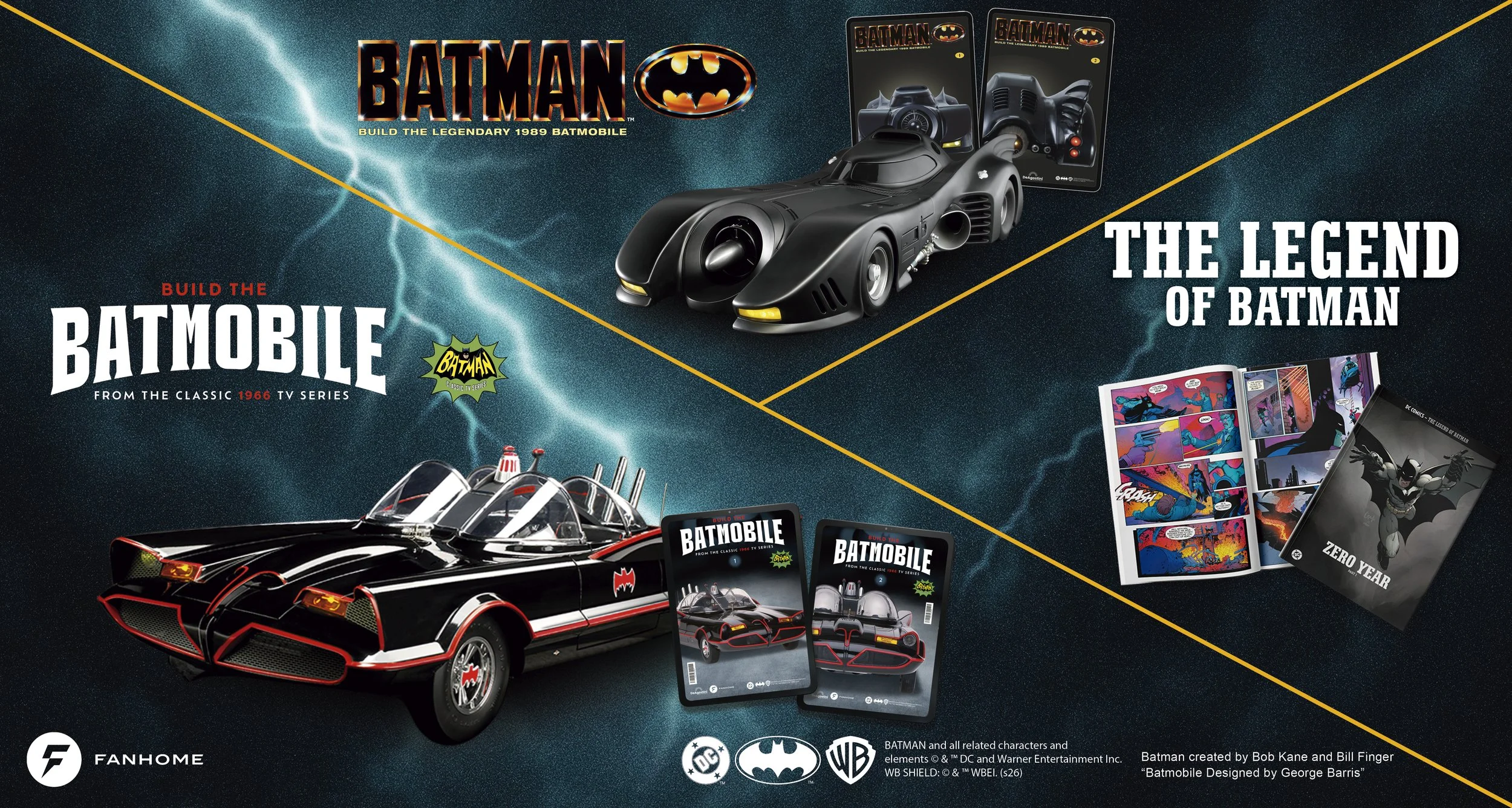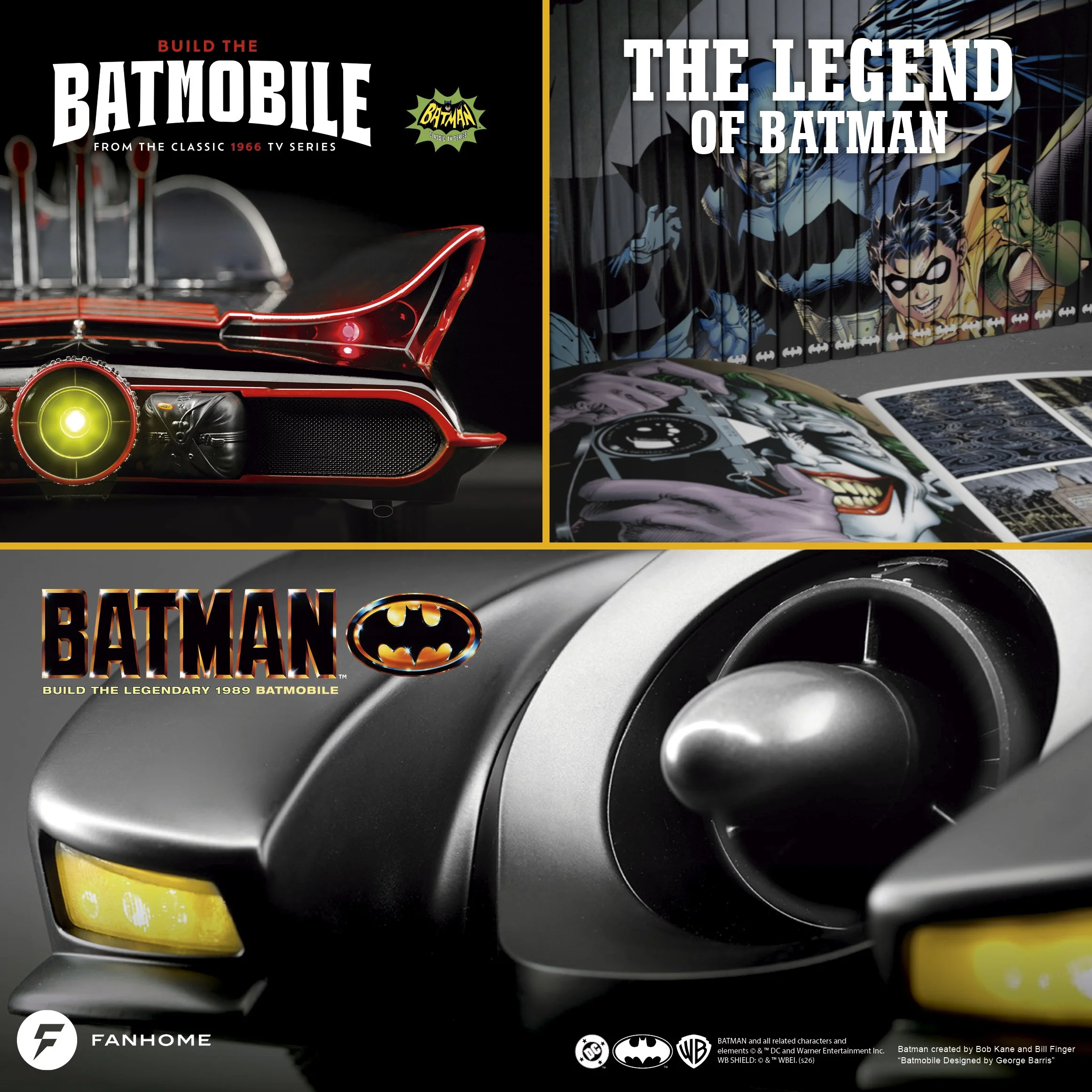 Fanhome, the leading producer of subscription-based collections, celebrates the legendary crime-fighting caped crusader – Batman – with a trio of unique subscription-based collectibles that are sure to become the focal points of any ardent fan’s collection. Catch The Legend of Batman, an expansive collection of acclaimed hardcover graphic novels featuring the greatest adventures of DC’s legendary superhero and a pair of extraordinary screen accurate build-up models of the Batmobile as depicted in the classic 1966 TV series and from the Warner Bros. Pictures’ 1989 blockbuster “Batman” movie, directed by Tim Burton. Each product captures a distinct era in the evolution of this iconic action franchise